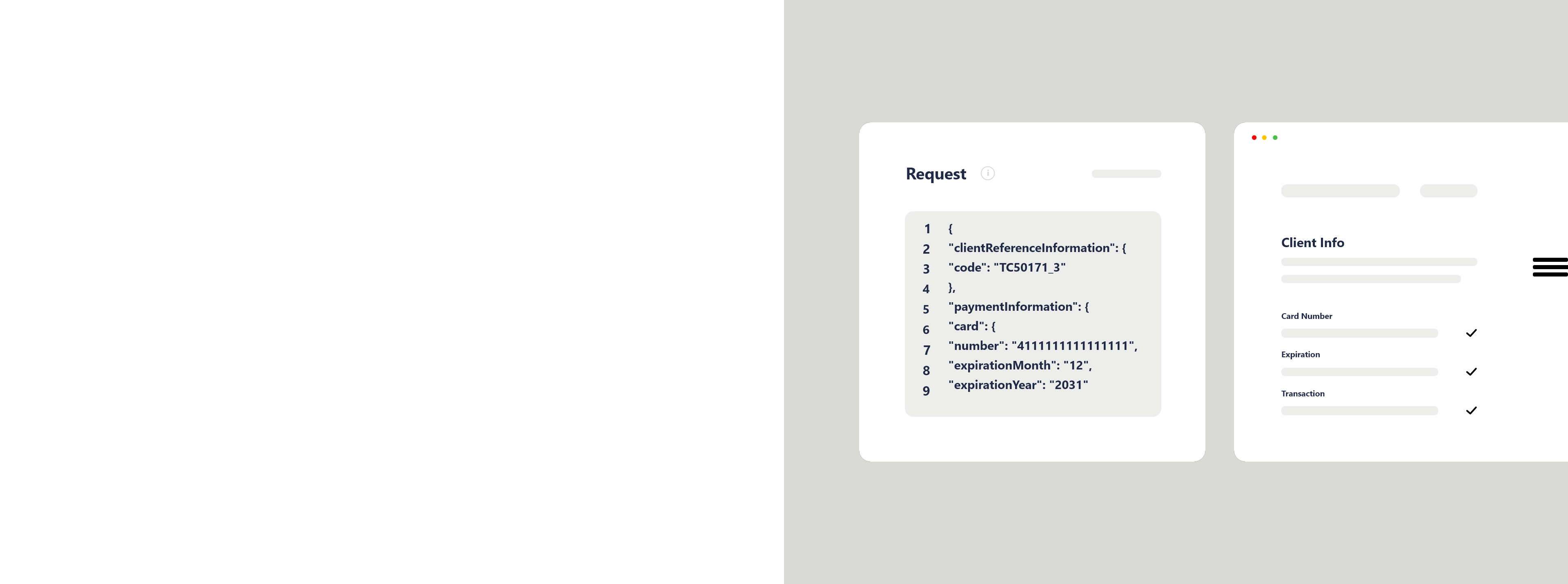 View sample code and field descriptions. Send requests to the sandbox and see the responses.
